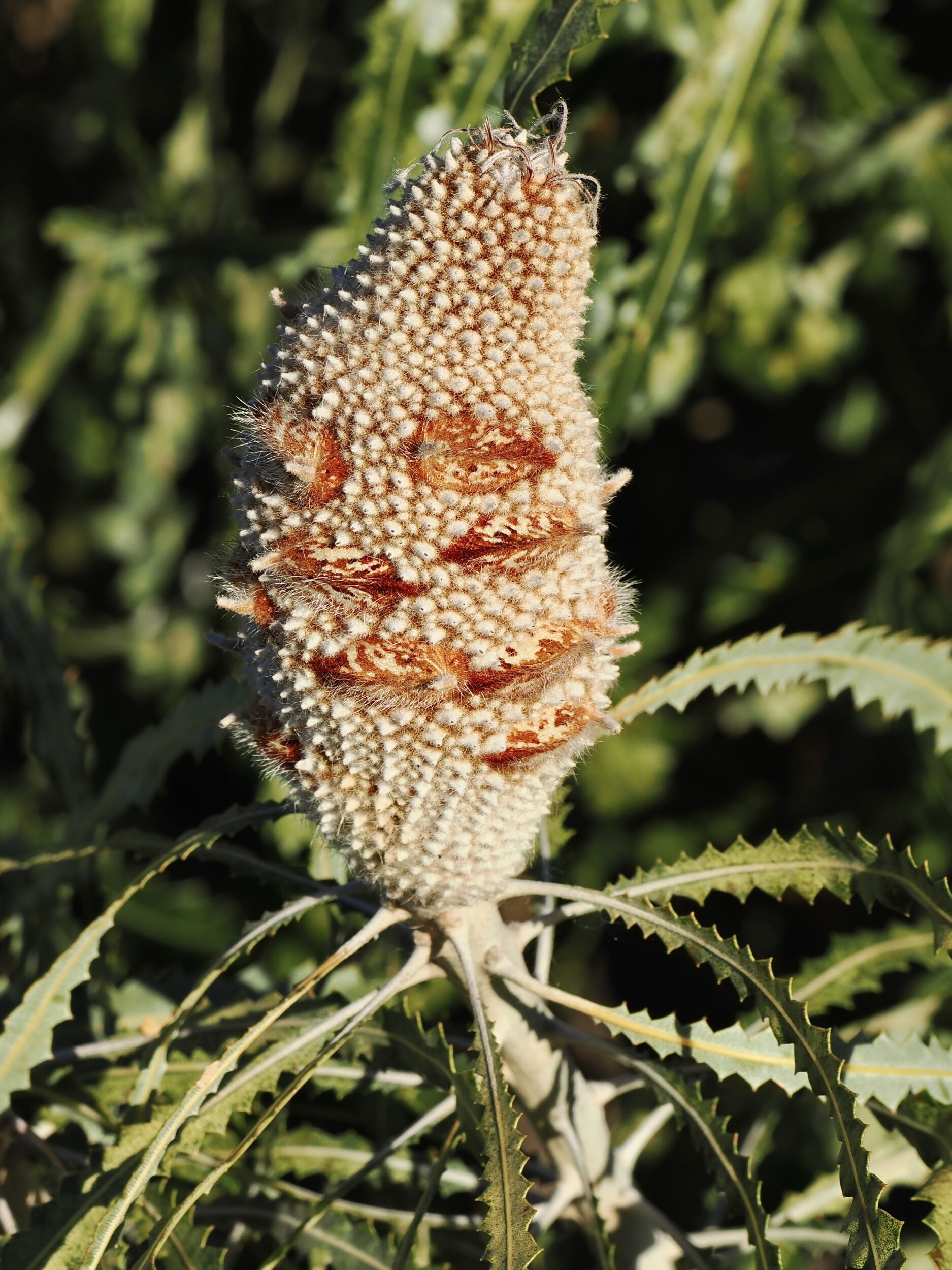 Its common name – Acorn Banksia – refers to the appearance of its large flower spikes during the early stages of their flowering.