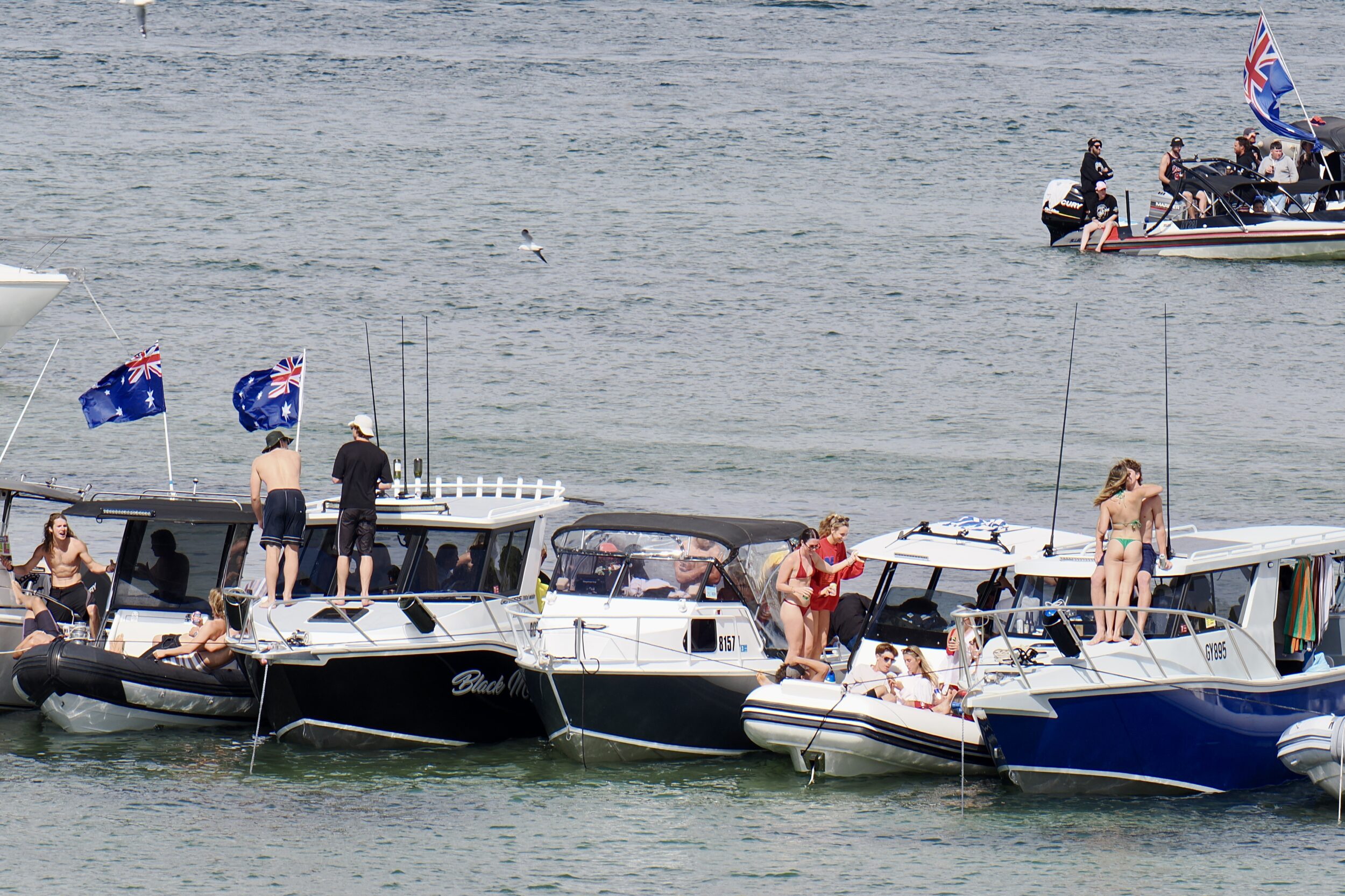 The waters immediately below the North Fremantle cliffs (where river and ocean are  separate, but very close to each other) were thronged with Australia Day revellers, and many millions of dollars worth of boats.