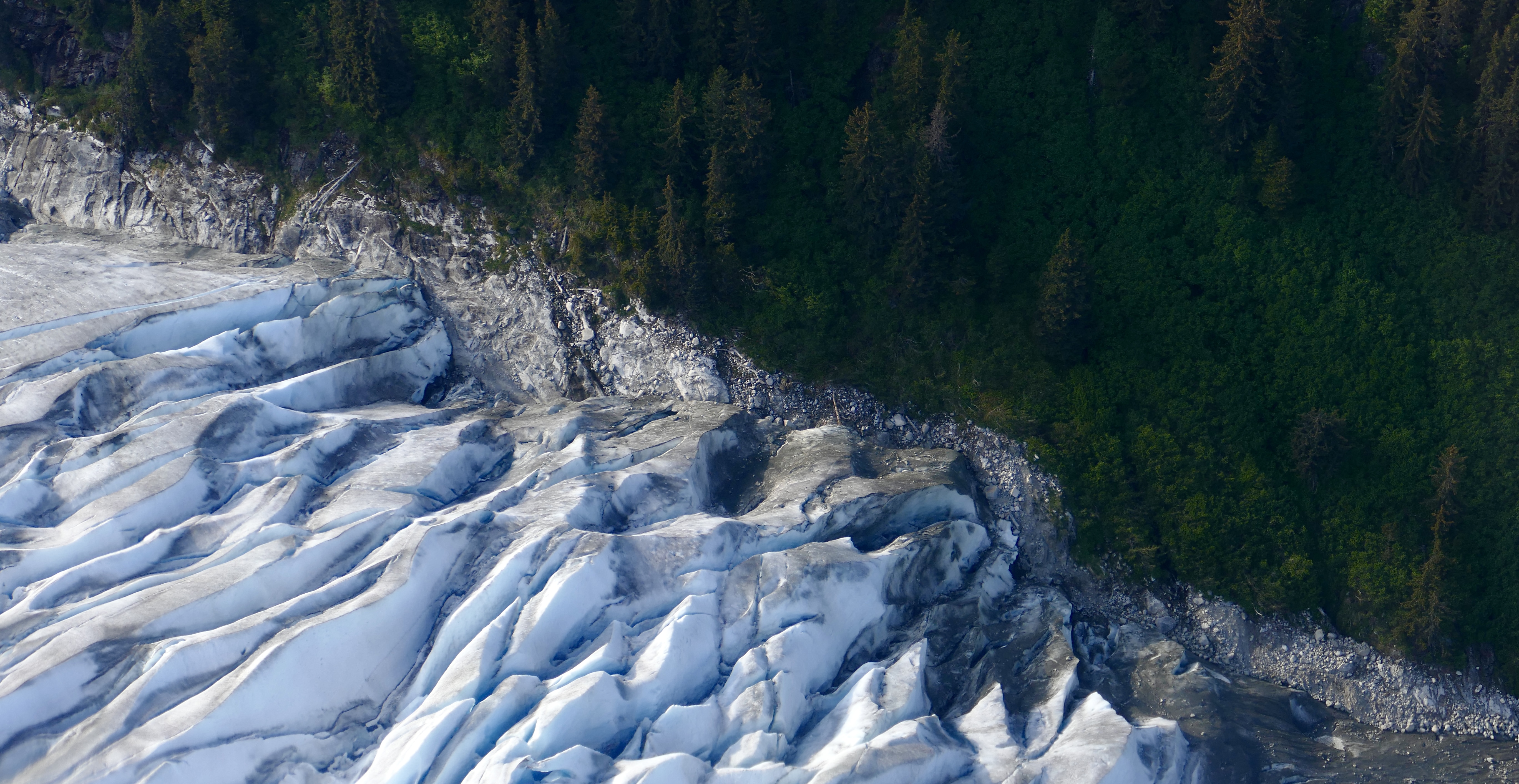 It depicts an ongoing reality in Alaska: for more than a few years, ice fields have been thinning, and once-massive glaciers have been receding/diminishing.