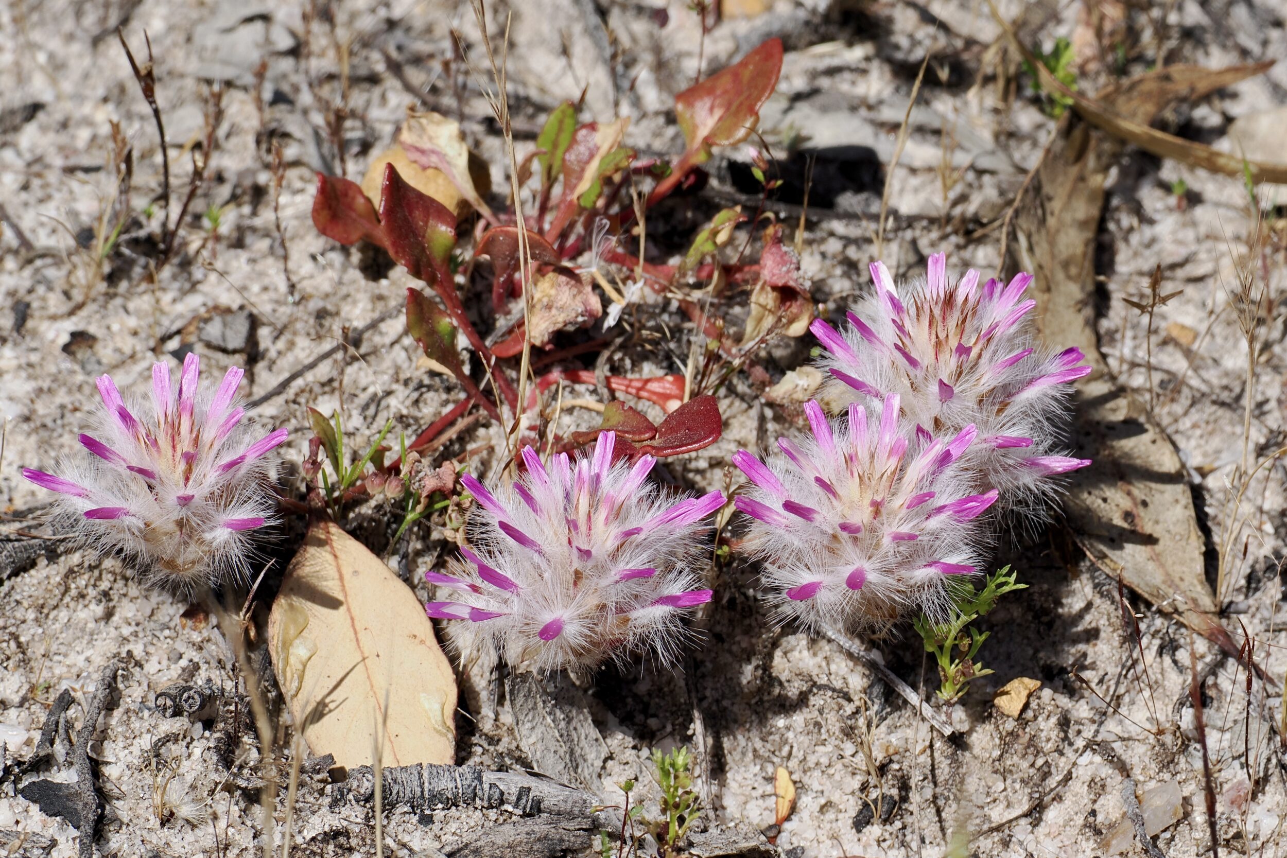 You are looking at a petite member of the genus Ptilotus – the plants commonly known as “mulla mulla”.