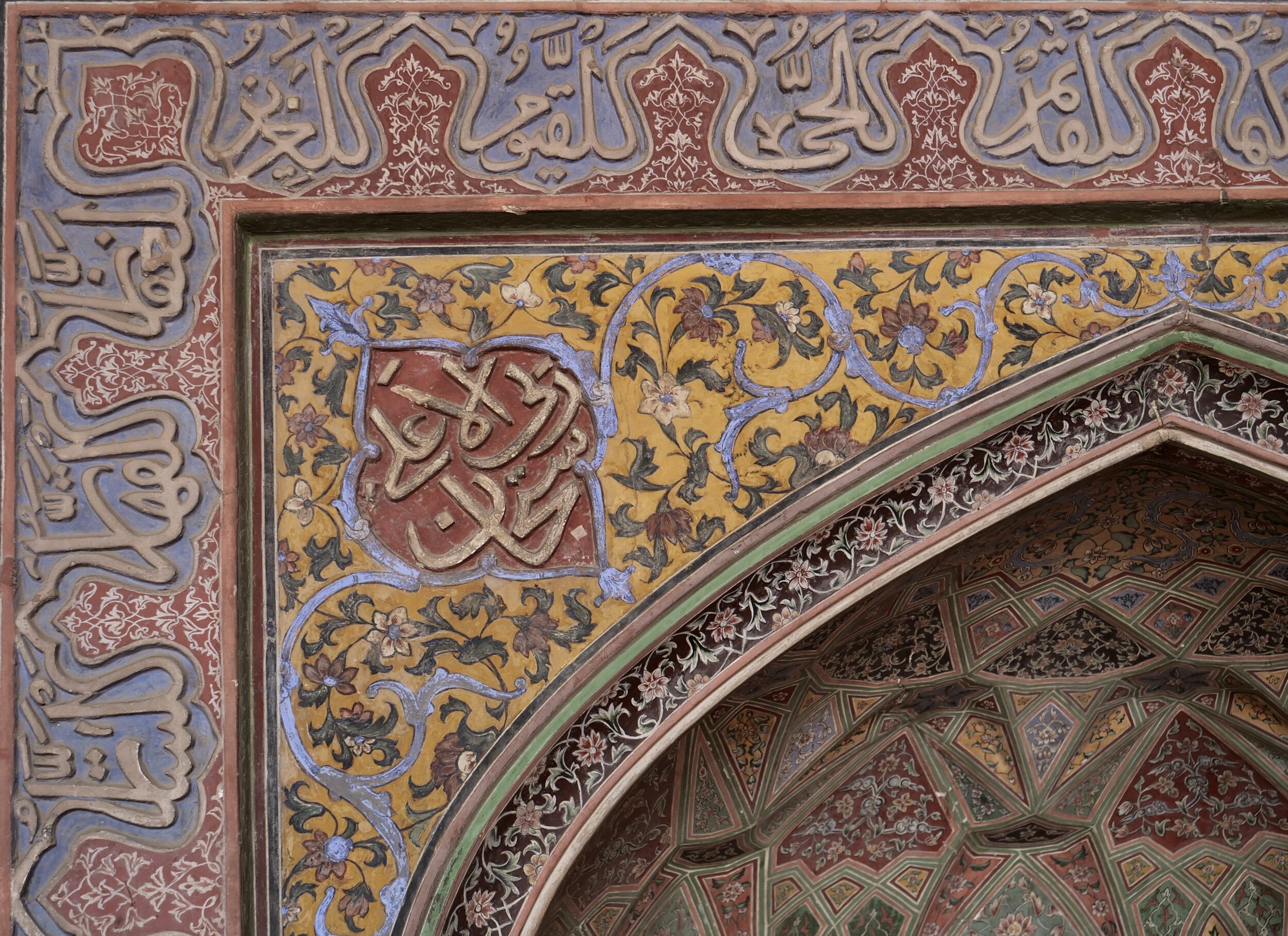 The featured image is a wide-angle (24 mm) shot of one of several such niches in Wazir Khan mosque’s prayer hall; each sits under one of its domes.