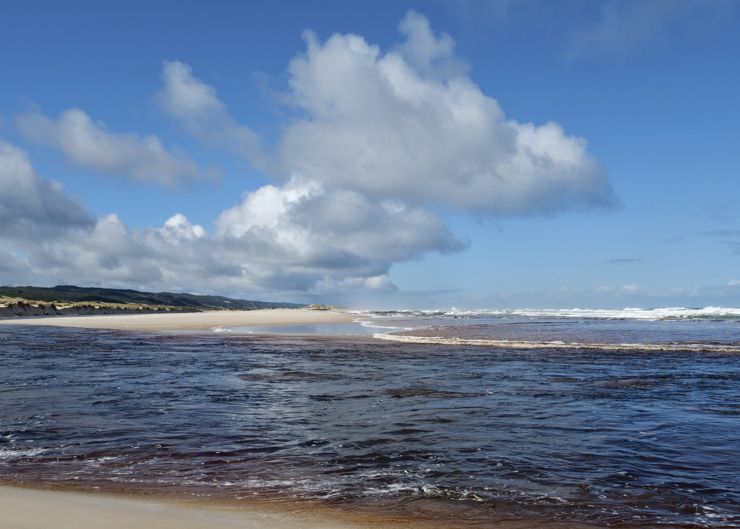 A river’s mouth and the beach it breaches – or only sometimes manages to breach – can be very dynamic places.